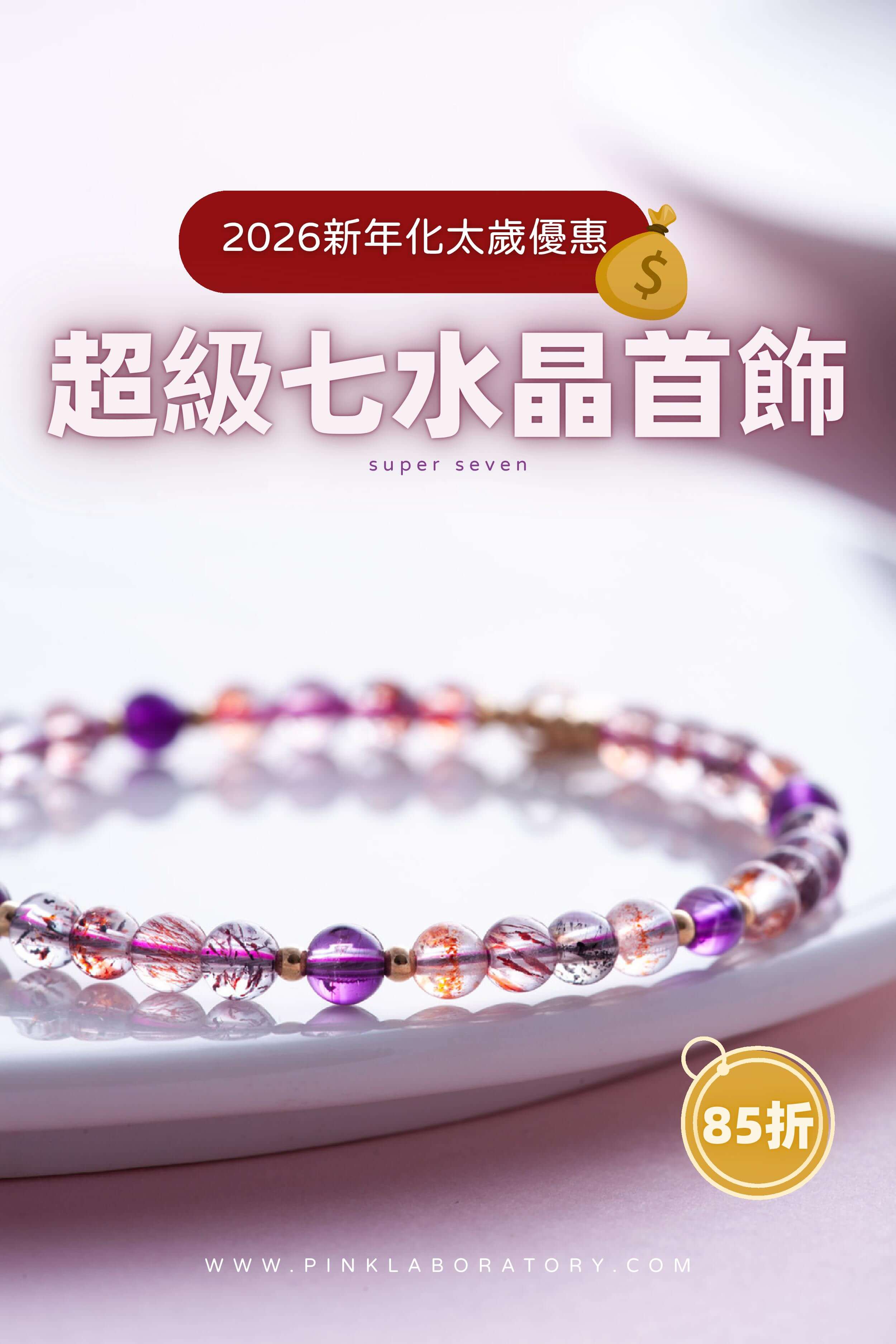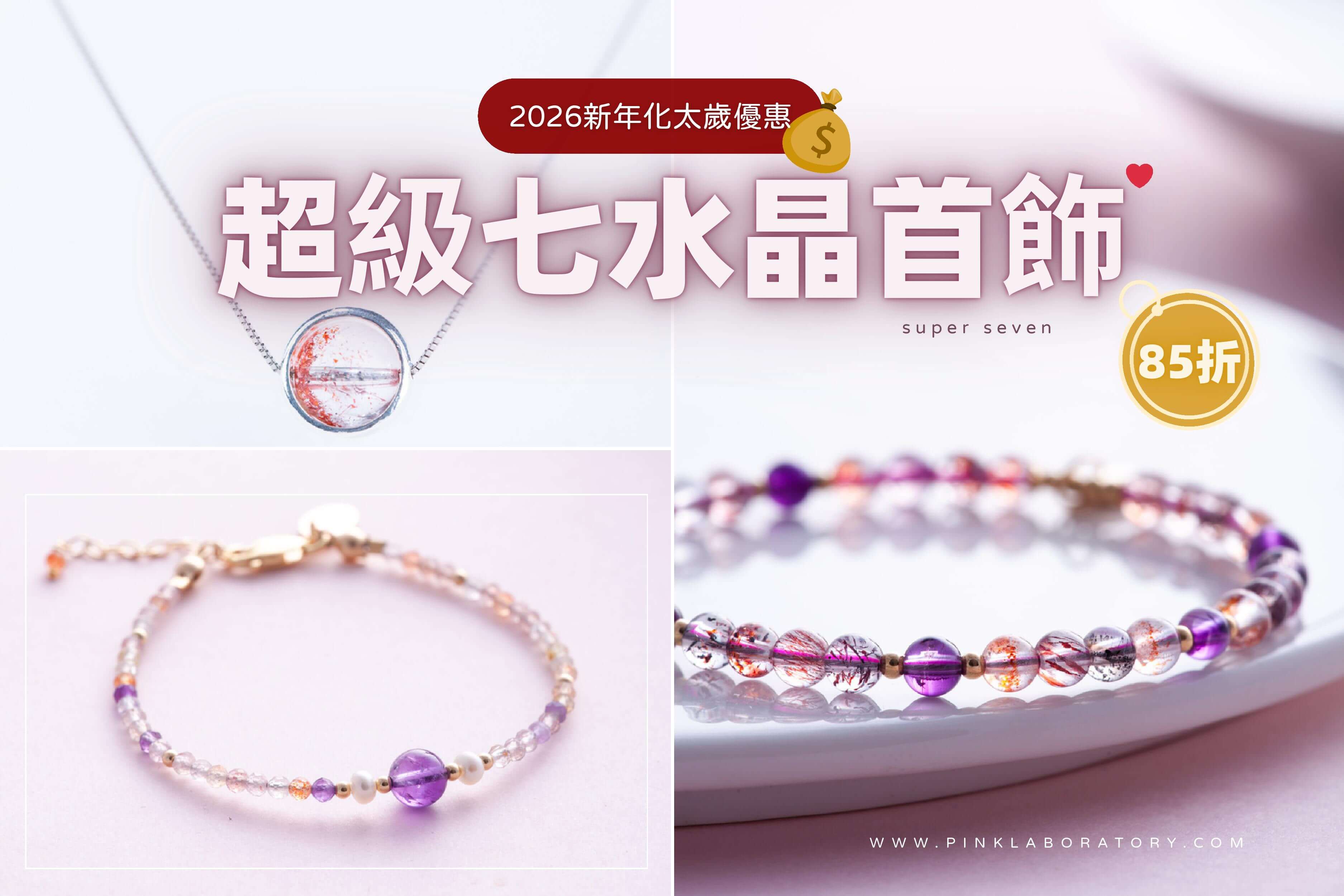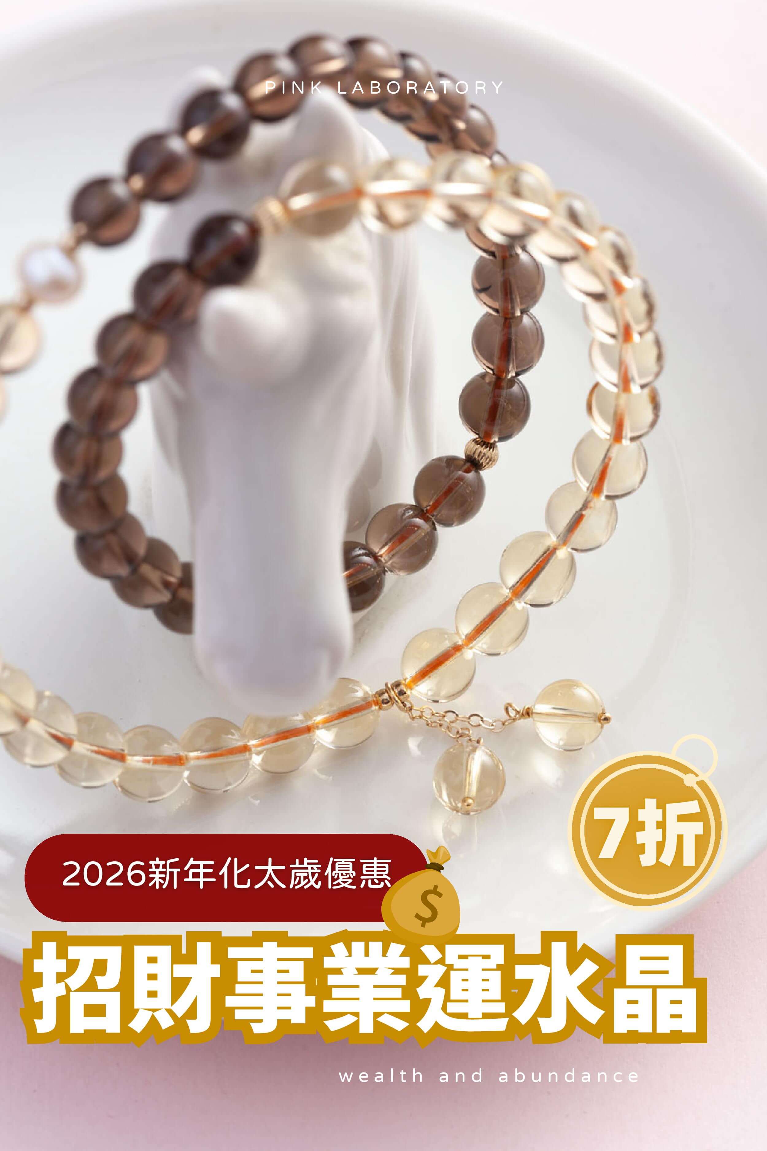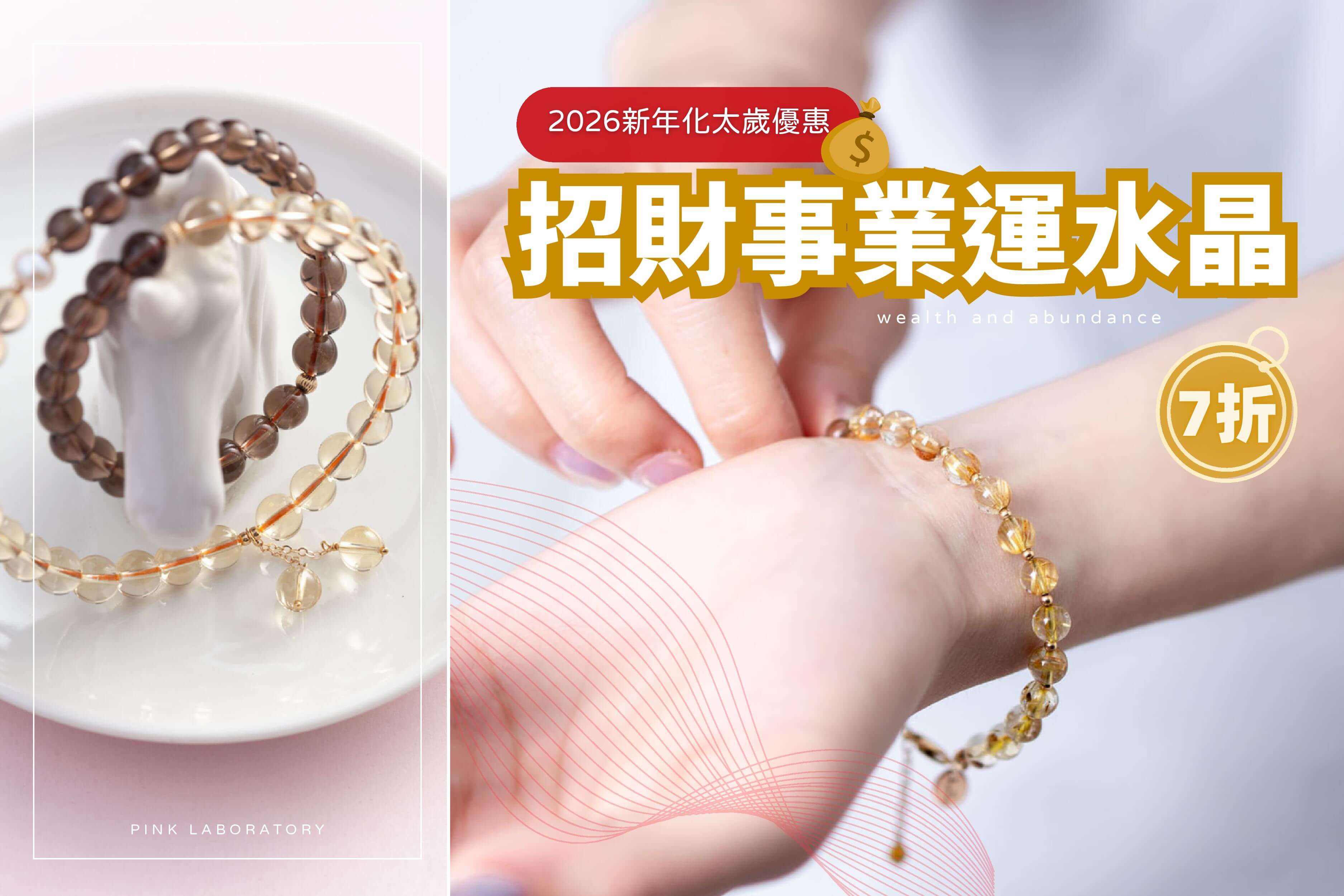 星光草莓晶粉水晶14k包金手鍊
