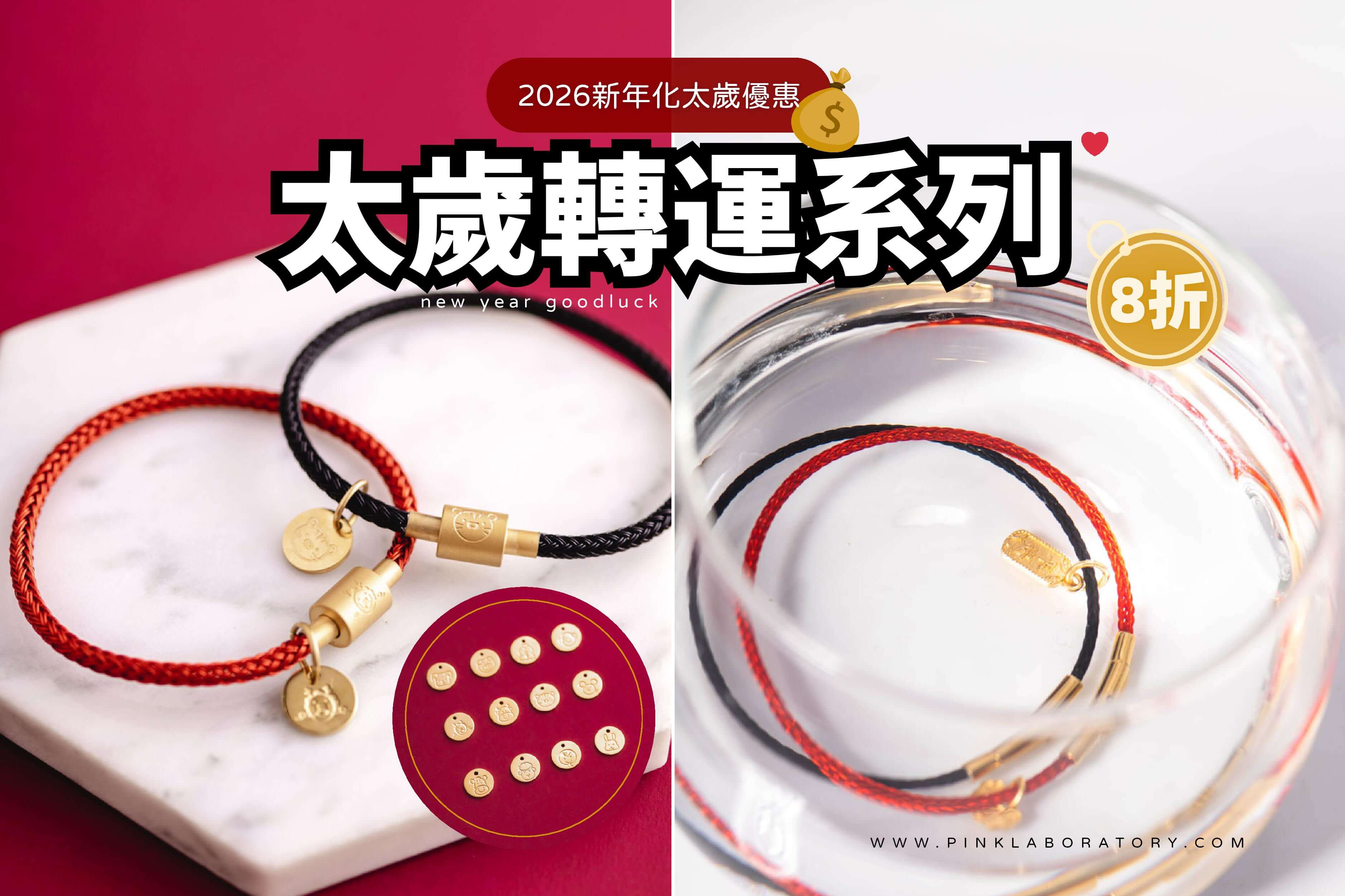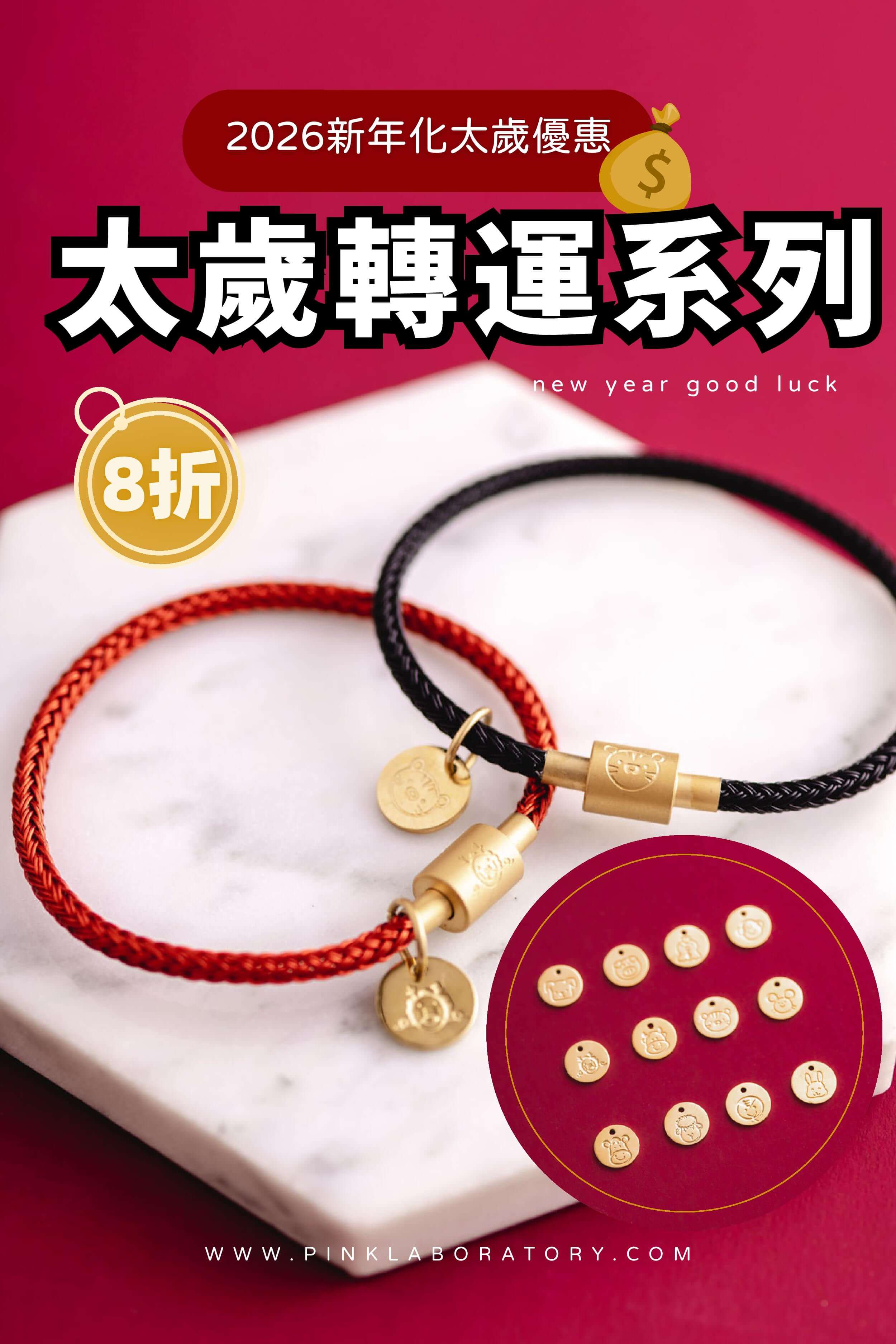 化太歲紅繩金飾極細手鍊 | 本命年吊飾