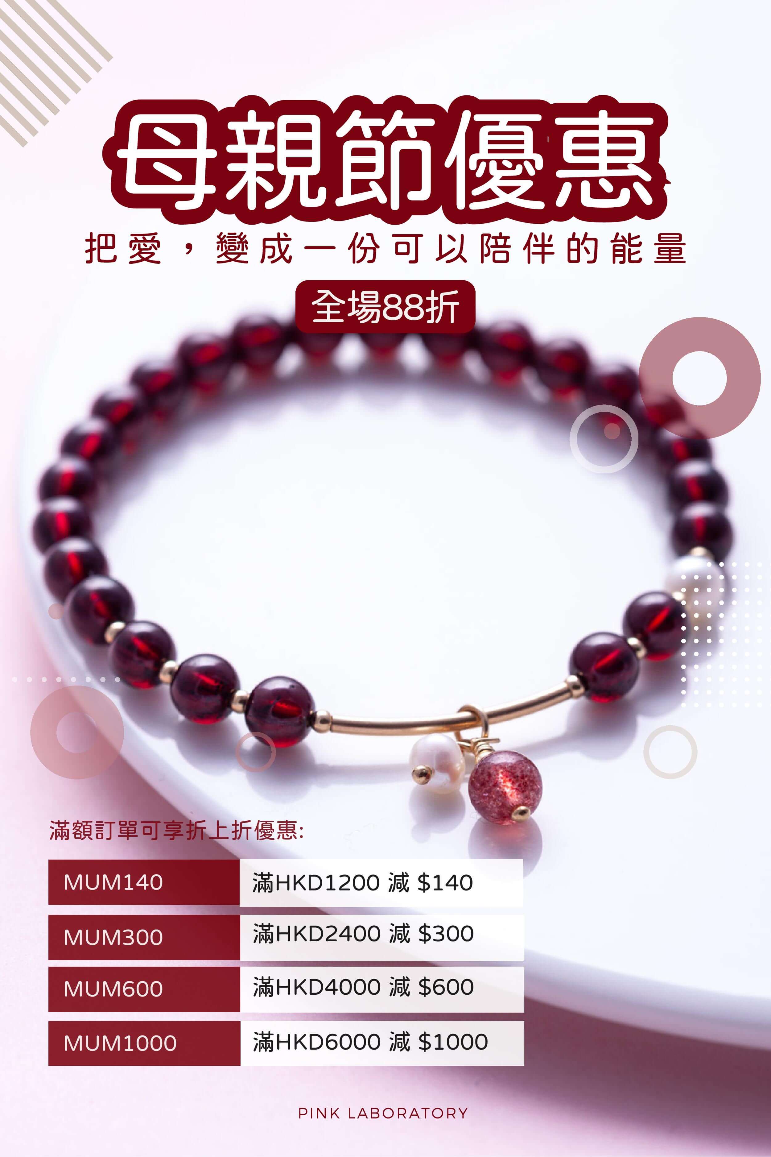 巴西石榴石8mm手鍊 | 紫牙烏酒紅色