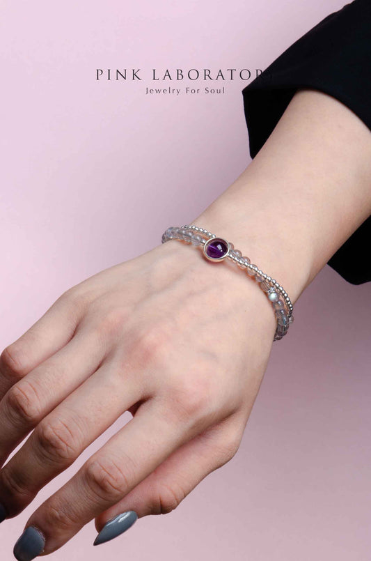 天然水晶搭配純銀或包金小珠的雙圈設計,日常配戴兼顧知性與精緻