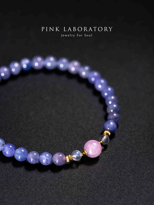 堇青石紫鋰輝草莓晶14K鍍金手鍊