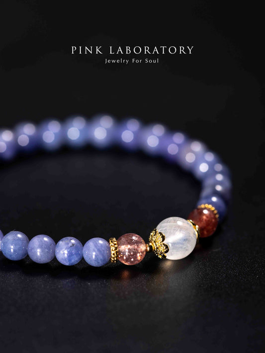 坦桑石草莓晶月光石14k鍍金手鍊