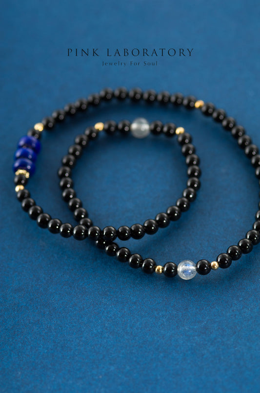 黑瑪瑙青金石兩圈手鏈 | 14K包金手鍊