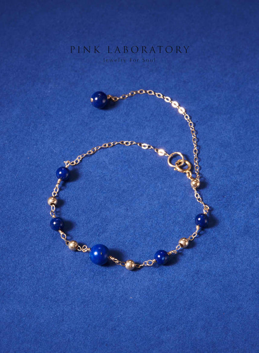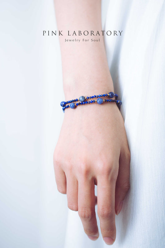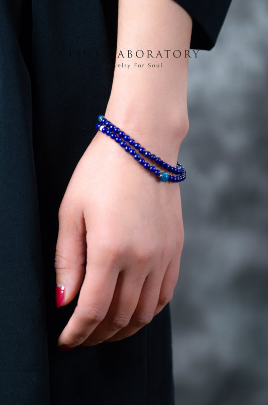 青金石磷灰石手鍊 | 兩圈 | 4mm | 14K包金