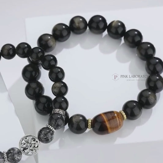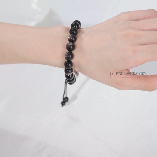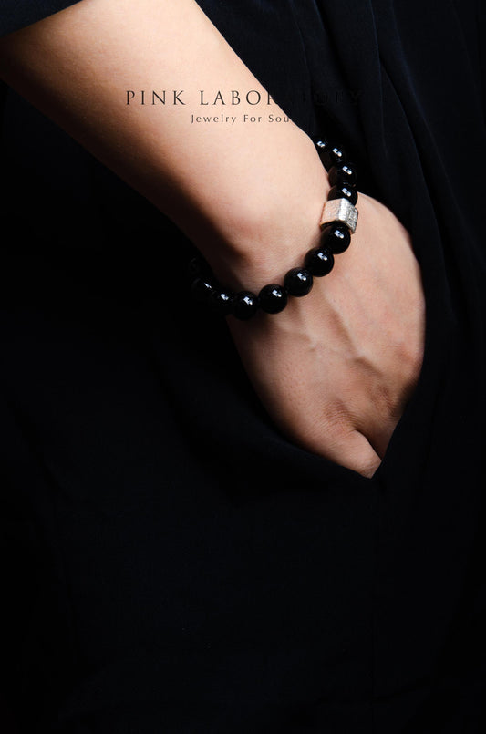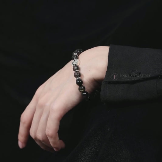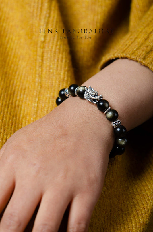 5A級金曜石925純銀手鍊 | 黑曜石 | 龍頭