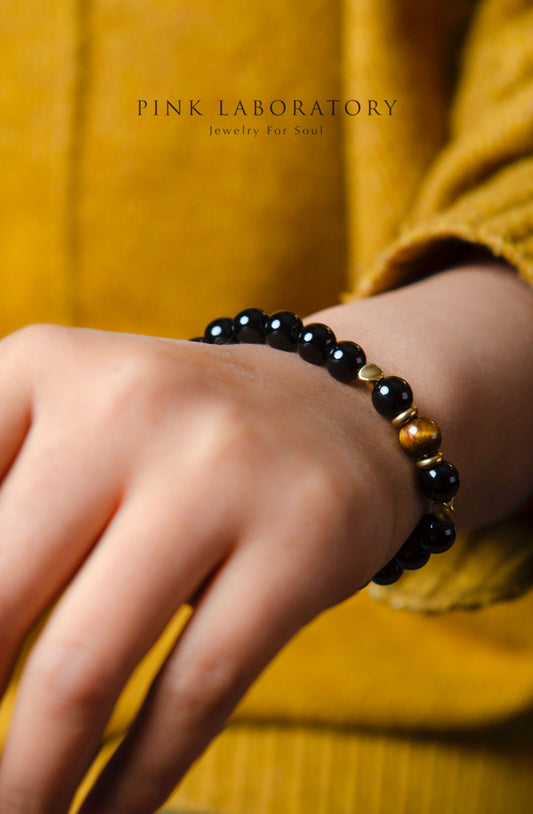 金沙黑曜石虎眼石 黃銅配件手鍊
