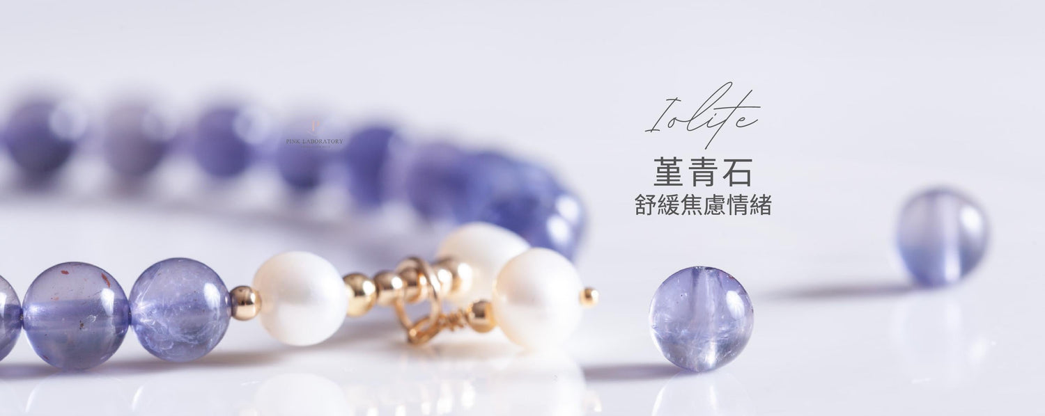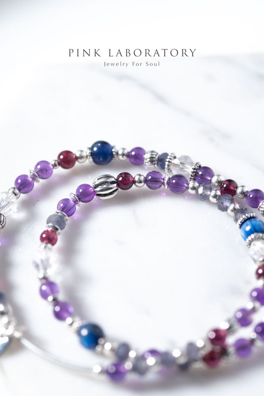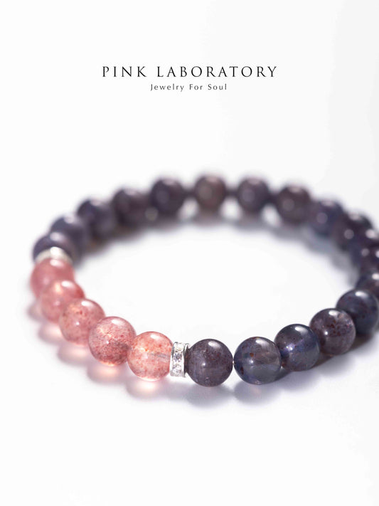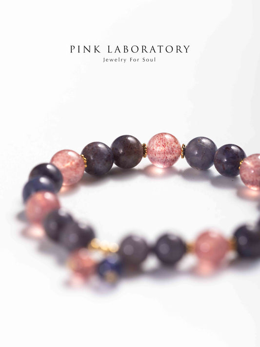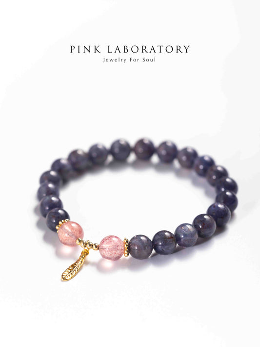 堇青石紫鋰輝草莓晶14K鍍金手鍊
