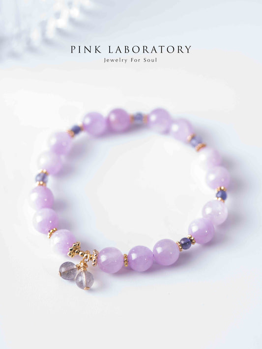 堇青石紫鋰輝草莓晶14K鍍金手鍊