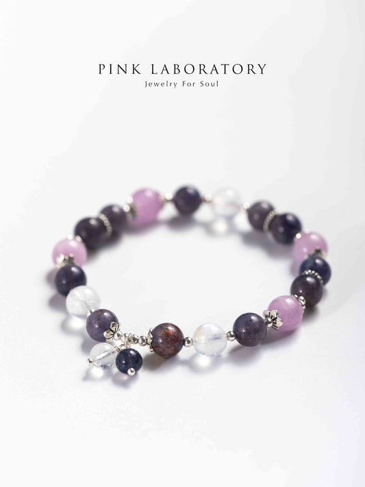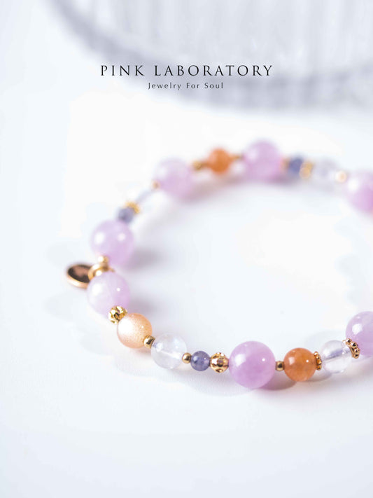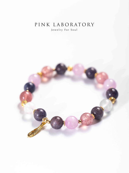 堇青石紫鋰輝草莓晶14K鍍金手鍊