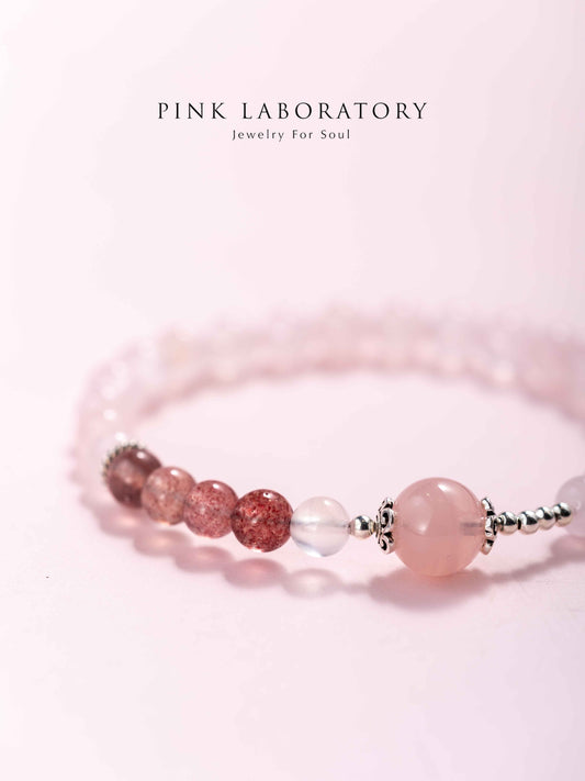 粉水晶草莓晶925純銀手鍊