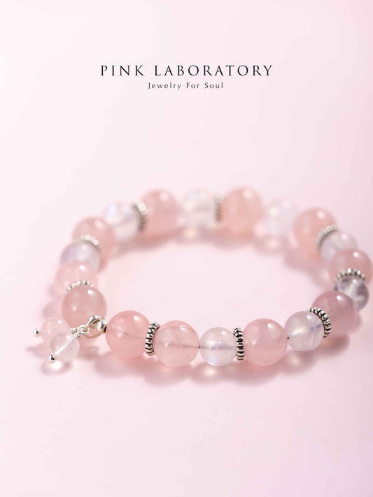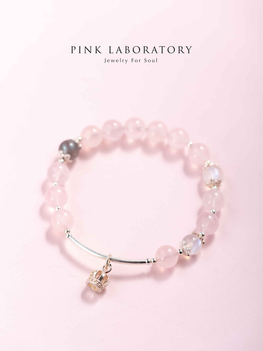 粉水晶月光石拉長石925純銀手鍊