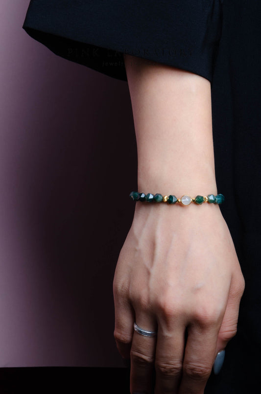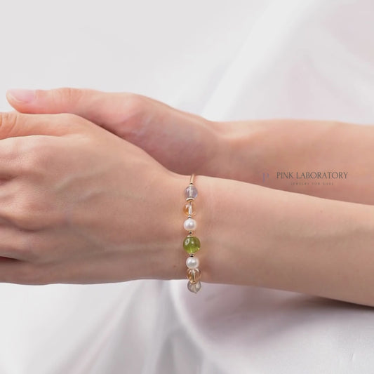 綠草莓晶 14K包金極細手鍊 | 字母客製