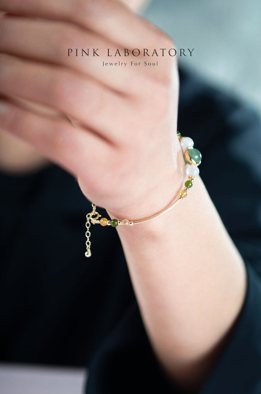 葡萄石太陽石綠髮碧璽14K鍍金手鍊