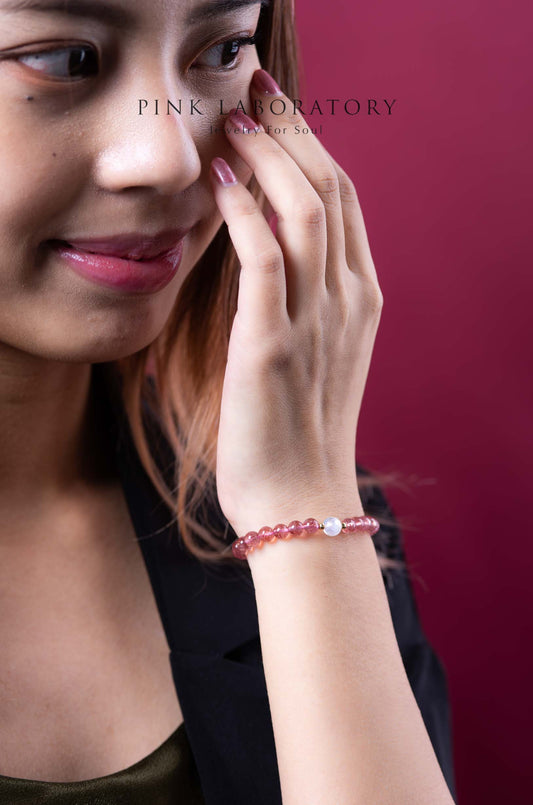 鴿血紅草莓晶手鍊 | 粉晶 | 925純銀配件 | 單圈 | 平和