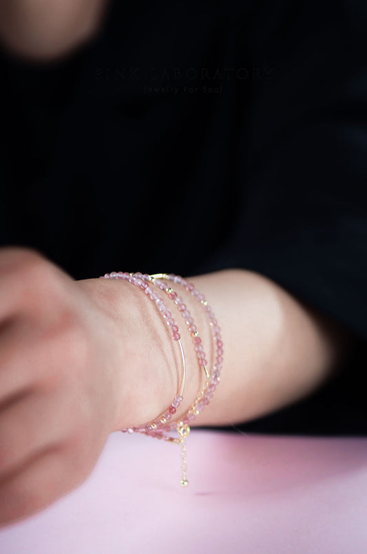 極細草莓晶手鍊 | 三圈 | 14K包金