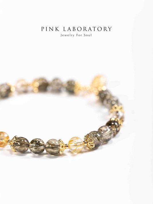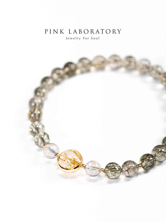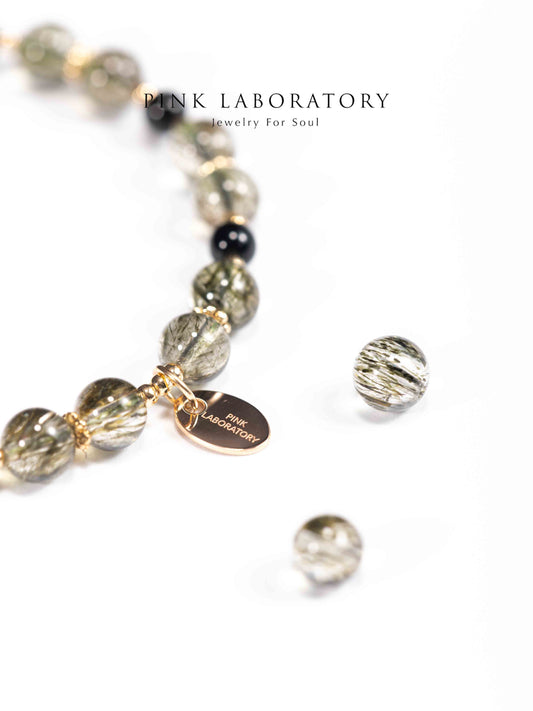 綠碧髮晶黑瑪瑙14KGF手鍊
