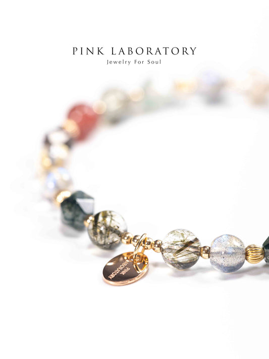 綠碧髮晶金髮晶草莓晶14KGF手鍊