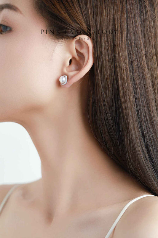 天然淡水珍珠925純銀精鍍亮澤白金耳環