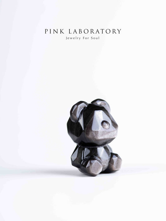 銀曜石小熊|招財防小人水晶擺件