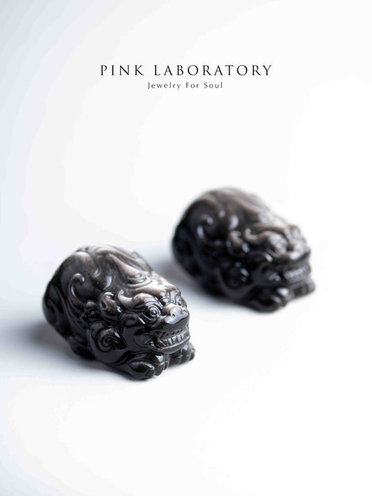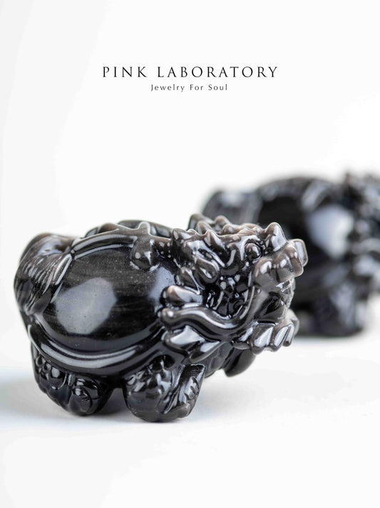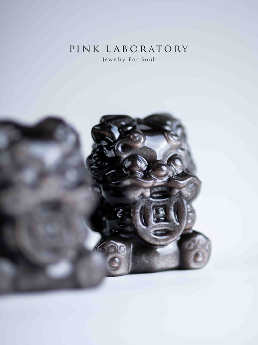 銀曜石辟邪獅子|招財防小人水晶擺件