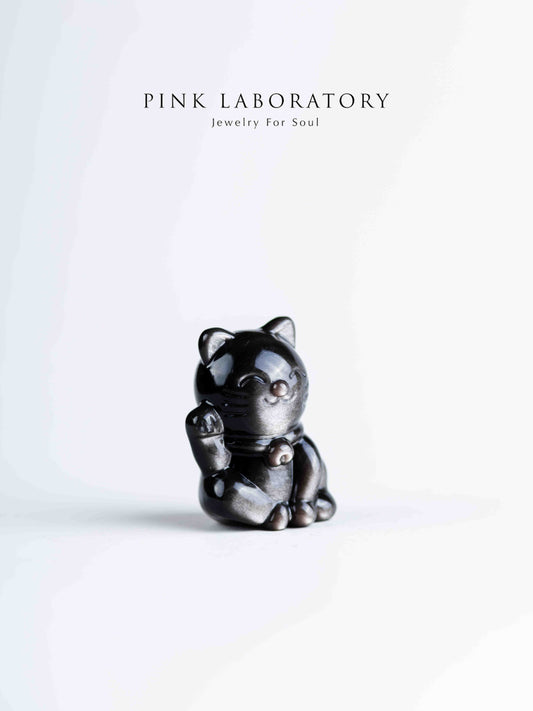 銀曜石招財貓|招財防小人水晶擺件