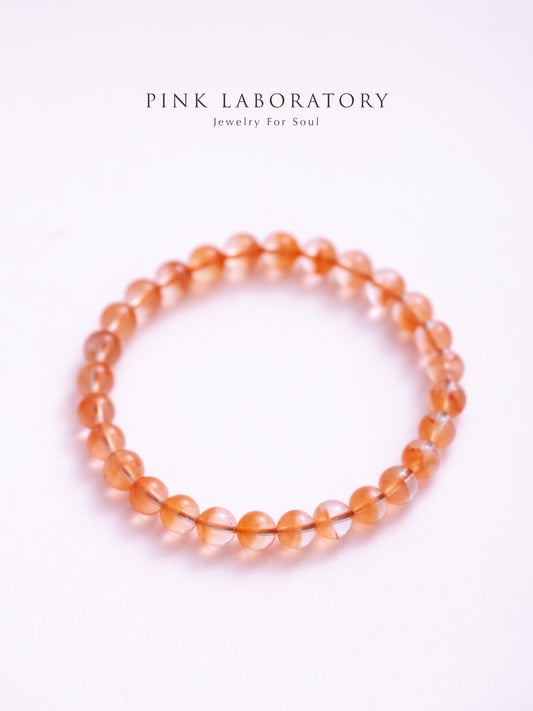 聚寶盆紅兔毛紅髮晶 月亮石14KGF手鍊