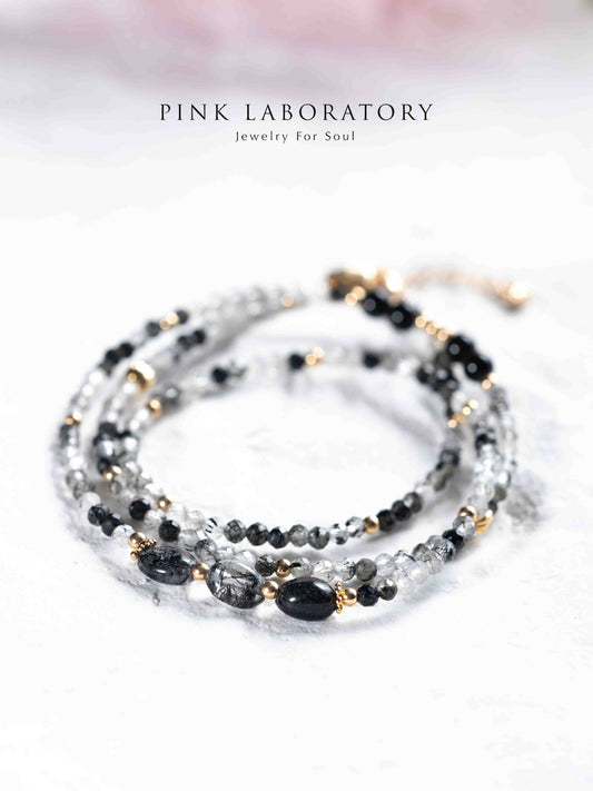 黑曜石黑髮晶極細三圈手鍊