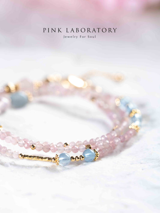 粉水晶海藍寶摩根石極細三圈手鍊