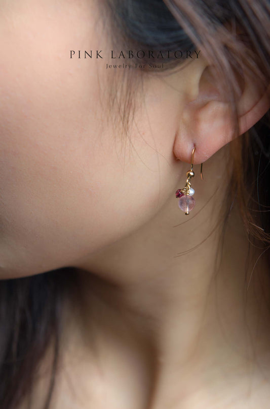 草莓晶石榴石珍珠 | 14K包金 | 純銀耳環