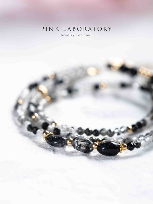 黑曜石黑髮晶極細三圈手鍊