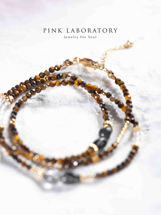 黑髮晶白水晶虎眼石極細三圈手鍊