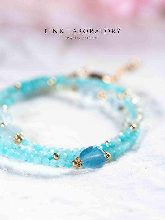 海藍寶葡萄石天河石極細三圈手鍊