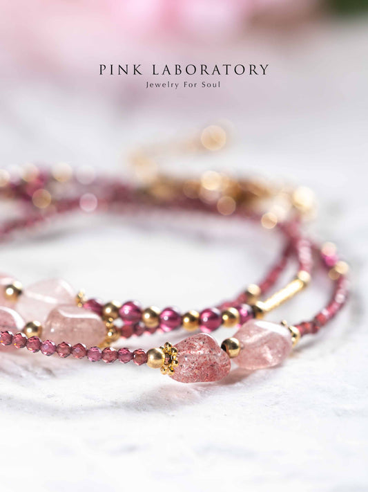 草莓晶石榴石極細三圈手鍊