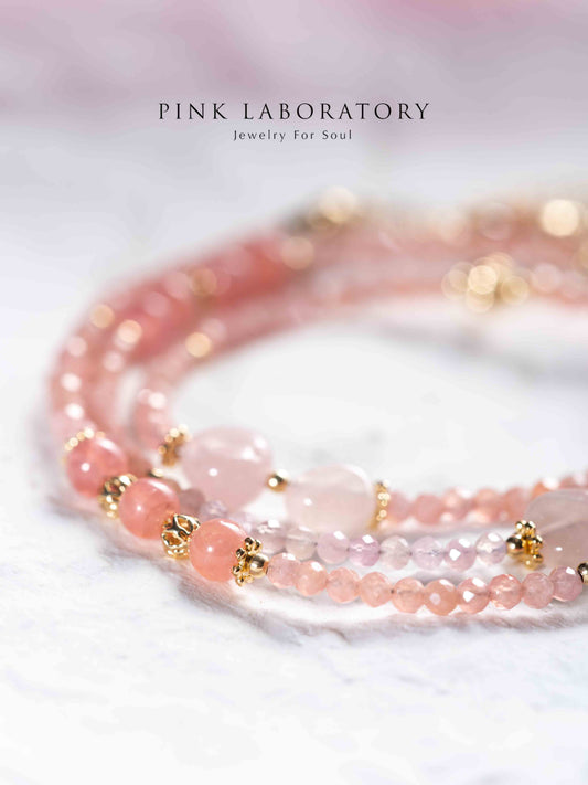 粉水晶紅紋石極細三圈手鍊