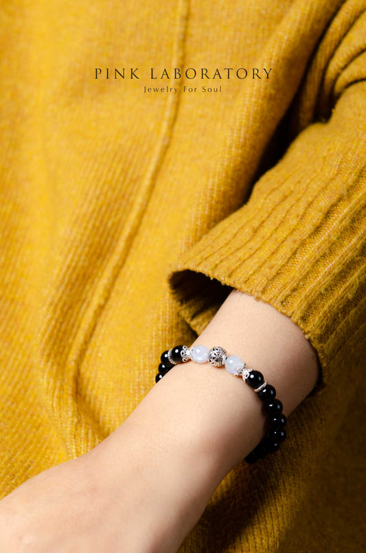 黑瑪瑙月光石手鍊 | 925純銀 | 8mm | 泰銀
