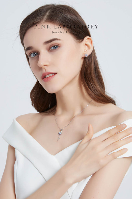 藍光玻璃體月光石鑰匙吊墜 | 925純銀鍍金頸鍊