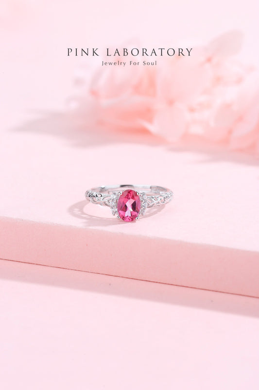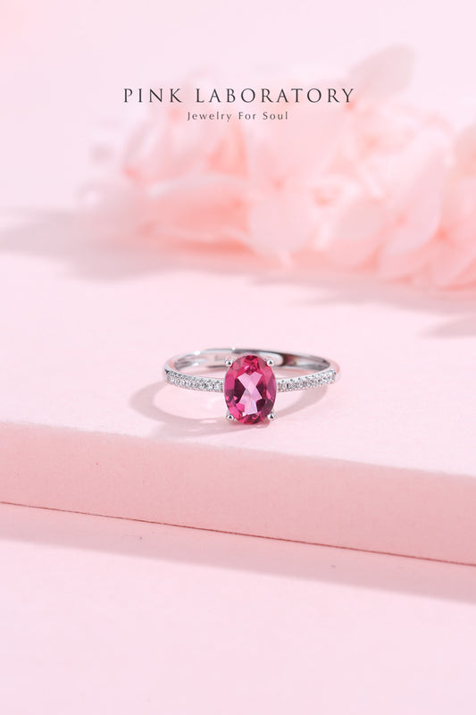 粉紅托帕石戒指 | 925純銀精鍍亮澤白金