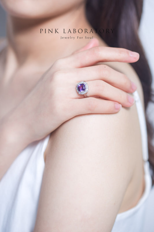 紫水晶公主方形戒指 | 925純銀白金戒指