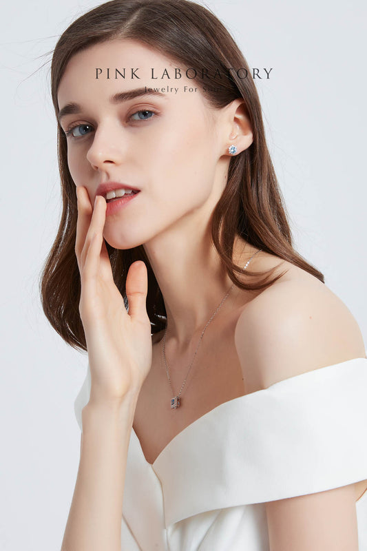 瑞士藍托帕石925純銀精鍍亮澤白金耳環
