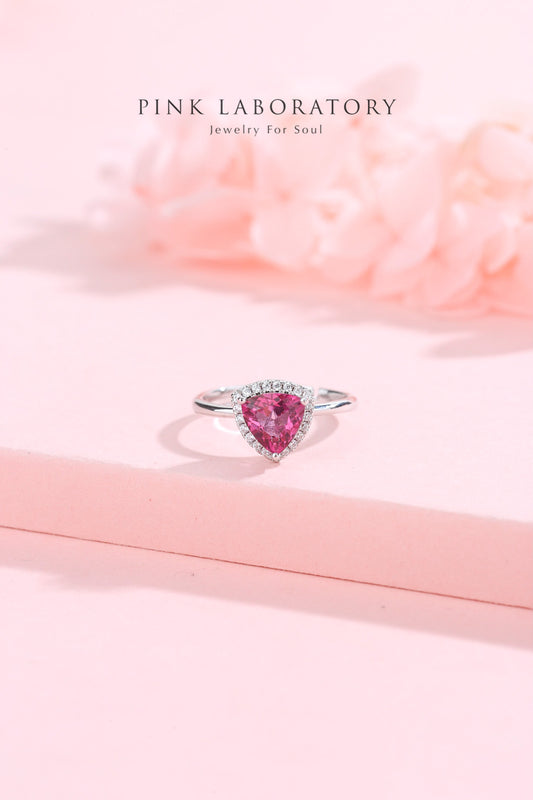 粉紅托帕石公主三角戒指 | 925純銀精鍍亮澤白金戒指