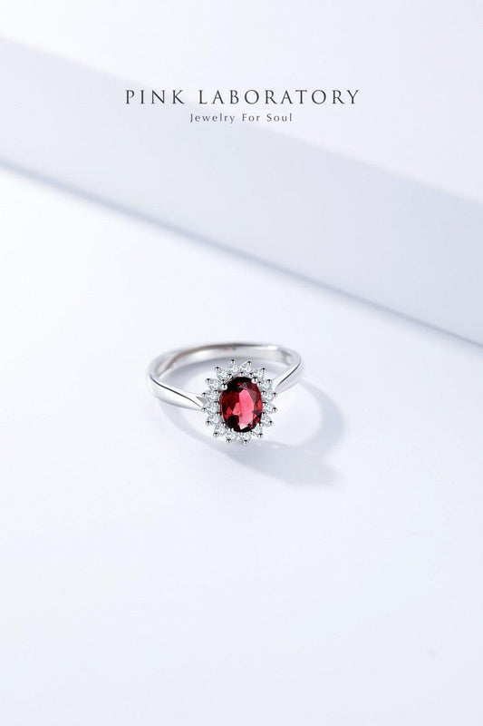 粉紅碧璽925純銀精鍍亮澤白金戒指