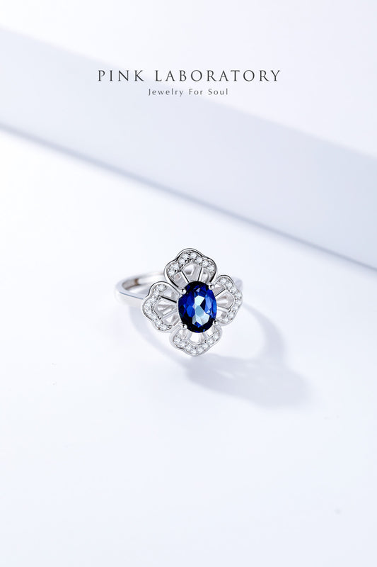 倫敦藍拓帕石花邊戒指 | 925純銀鍍白金