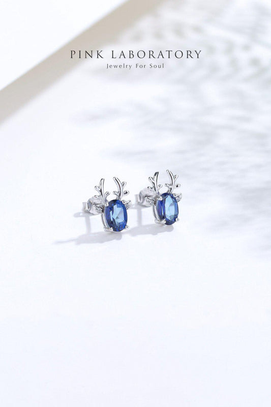 倫敦藍托帕石鹿角耳環 | 925純銀鍍白金耳釘