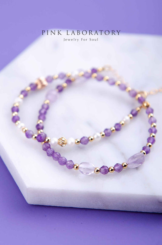 烏拉圭紫水晶手鍊 | 珍珠 | 切面 | 多圈
