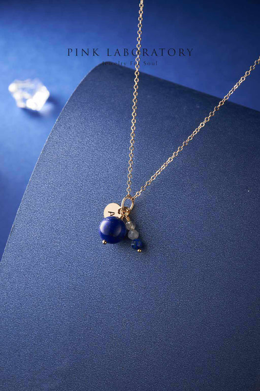 青金石字母項鍊吊墜 | 14K包金頸鍊