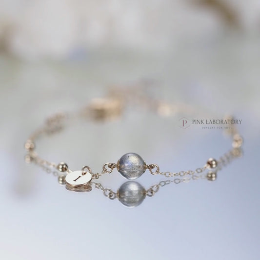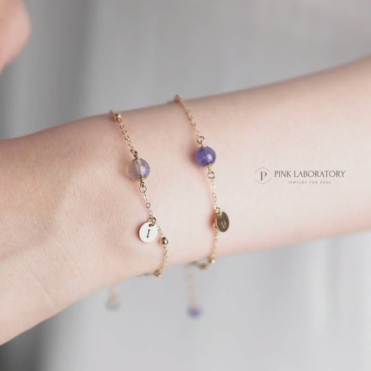 海藍寶粉水晶14k包金手鍊