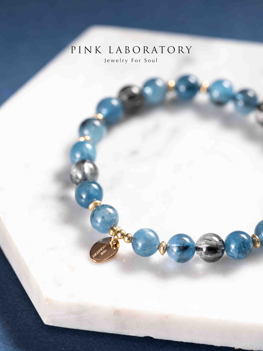 魔鬼藍海藍寶黑髮晶14KGF手鍊