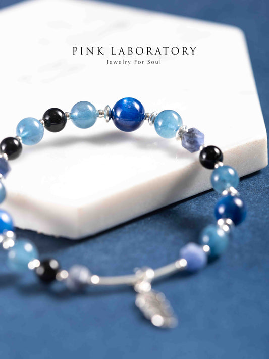 魔鬼藍海藍寶藍紋石黑瑪瑙925純銀羽毛手鍊