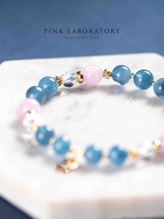 魔鬼藍海藍寶紫鋰輝石白水晶14K鍍金手鍊